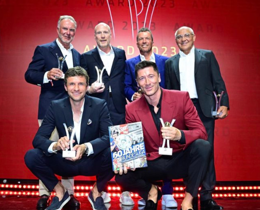 Ce lundi à Hambourg, Sportbild a organisé une cérémonie honorant les 60 ans de la Bundesliga au travers des prix « 60 ans de légende de la Bundesliga ». Ont ainsi été récompensé les anciens et/ou actuels bavarois : Accroupis Thomas Müller et Robert Lewandowski; Karl-Heinz Rummenigge, Thomas Müller, Matthias Sammer, Lothar Matthäus et Felix Magath (debout de gauche à droite)
