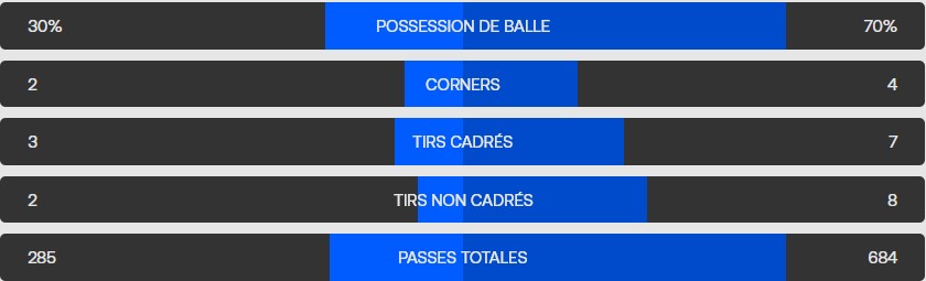 Kimmich se charge du corner. Matsima intervient et manque de marquer contre son camp, avec ce ballon qui rebondit sur la barre à la 90e +2 !