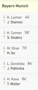 Le Bayern maitrise le match et gère tranquillement ses 3 buts d’avance à la mi-temps.