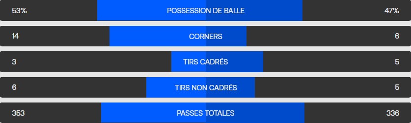 29è, après deux corners infructueux, un coup franc très excentré expédie la balle dans la surface. C’est mal renvoyé dans l’axe, Davies suit et sert Coman de la tête, le Français rate de peu le cadre du droit !