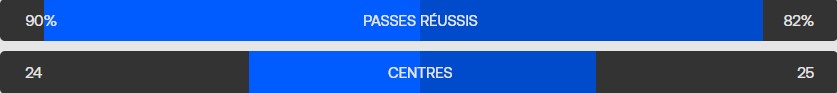 Petit pont de Kane sur son adversaire directe à la 39e, sa frappe est trop croisée et n’est pas cadrée.