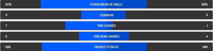 A la mi temps, le Bayern est maitre sur le terrain avec un score peu flatteur et révélateur de la prestation des hommes de Kompany.