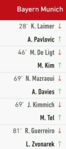 Laimer s’illustre encore en servant Müller après une série de contres favorables. Le numéro 25 butte sur Trapp qui sauve les siens à la 26è.