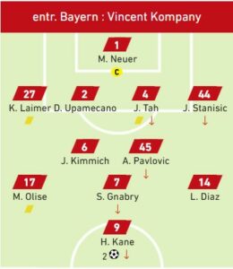 Portés par Olise et Kane, les bavarois s’imposent en maitrisant leur sujet du jour.