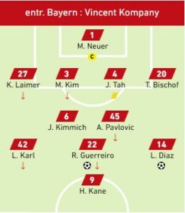Il aura fallu attendre les arrêts de jeu et la vista de Kimmich pour permettre au Bayern de prendre l’avantage.