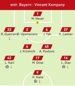 Karl trouve Olise qui remet à Pavlovic aux 20mètres.