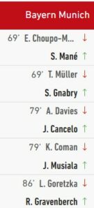 Idéalement lancé dans le dos de la défense, Gnabry anticipe la sortie de  Kobel et tente un lob depuis l’extérieur de la surface qui ne laisse aucune chance au gardien. Mais il est signalé hors-jeu au départ de l’action. But refusé  à la 85è.