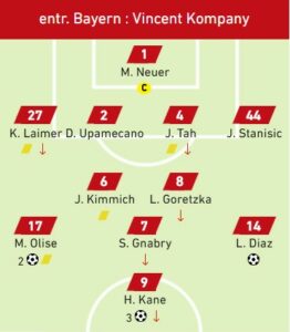 En roue libre, le Bayern va inscrire un 6è et dernier but par le biais de Kane, auteur d’un triplé.