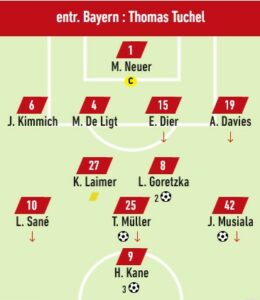48e, Musiala crochète surface pour servir Müller sur un plateau. 4 – 1 !
