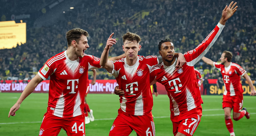 Joshua Kimmich : « La victoire est entre nos mains et on ne va pas la laisser filer maintenant. Franchement, avec 11 points d’avance, on ne va pas la laisser filer. Personne n’a jamais gâché une telle opportunité et ça ne changera pas. Au final, aujourd’hui, c’est le mental qui a fait la différence. On a peiné pendant longtemps. C’était un match très physique, très brouillon en première mi-temps, avec beaucoup de contre-attaques, de coups de pied arrêtés et de fautes. Aucun rythme n’a vraiment émergé. C’était un peu plus fluide en seconde période. On savait aussi à la pause qu’il serait difficile pour Dortmund de maintenir le rythme pendant 90 minutes. Ils ont eu deux semaines difficiles avec beaucoup de matchs, contrairement à nous, alors on savait : plus le match dure, plus notre avantage grandit. Heureusement, on a su le concrétiser en fin de rencontre. »