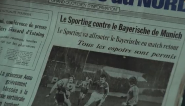 La photo ne montre pas de joueurs du Bayern mais on croit deviner des joueurs évoluant sous le maillot de l’équipe nationale des Pays Bas, alors que l’article évoque un Sporting (de Cournai) face au « Bayerische »… Le film est en partie tourné sur Lille est les environs, Cournai faisant penser à Tournai, ville belge à 10 minutes de Lille.
