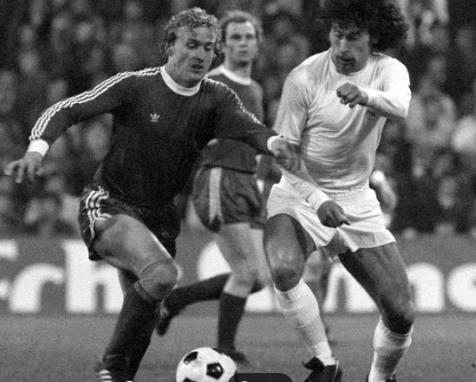>> Sur la photo, Breitner (Réal) dispute le cuir à Dürnberger, avec un Uli Hoeness observateur au second plan (1976)