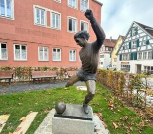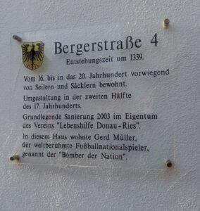 Revenant de Münich et de Nördlingen, hommage à Gerd Müller en ce jour de son anniversaire avec quelques images : Gerd Müller Platz, maison natale, Statue commémorative, plaque apposée sur la façade de la maison natale Bergerstrasse 4.