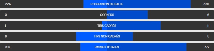 Résumé (plus court qu’à l’accoutumée…) d’un match à sens unique.