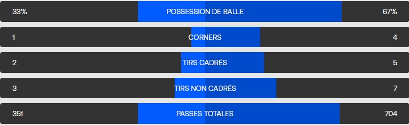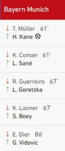 Les bavarois n’ont guère été inquiétés dans cette 1ere mi temps.