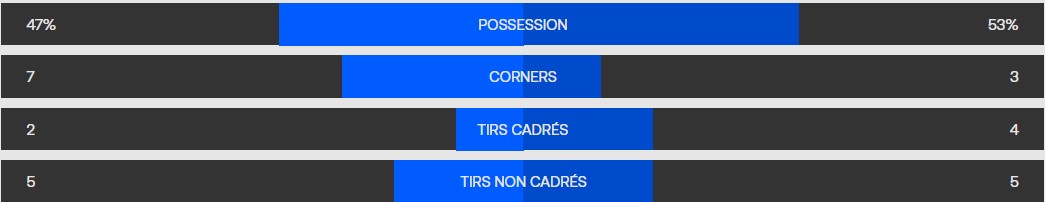 0 – 1 à la mi temps alors que pendant ce temps Dortmund est mené 0 – 2 sur sa pelouse.