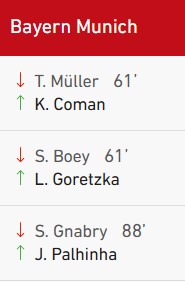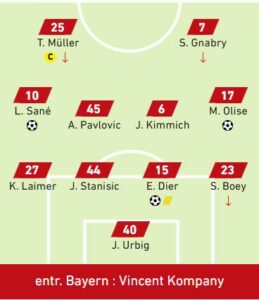 Goretzka, plein axe, aux abords de la surface, tente la passe vers Coman, qui perd le ballon à la 90e +5. Mauvais choix…