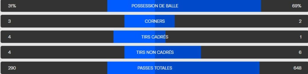 Ce match a manqué de folie. Aucun joueur n’a réellement provoqué en 1 contre 1. Ajouté à cela les lacunes citées ci dessus, tout à fait normal.