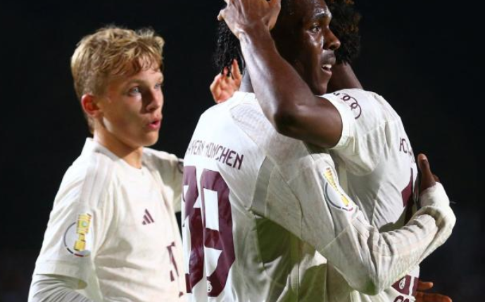 Le Bayern Munich s’est qualifié sans problème pour les 16es de finale de la Coupe d’Allemagne. Les Bavarois se sont imposés 4-0 sur la pelouse de Münster (D3 allemande). Mathys Tel, titularisé en attaque au sein d’une équipe remaniée, a marqué le quatrième but de son équipe, sur une passe de Bouna Sarr, à la 86e minute du match. C’est déjà le cinquième but cette saison en huit rencontres, toutes compétitions confondues, pour l’ancien Rennais, âgé de 18 ans.