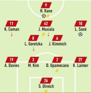 Kane trouve Choupo au 2nd poteau mais ce dernier ne parvient pas à placer sa tête hors de portée à la 90 +4.