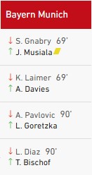 Pavlovic récupère dans les pieds de Carreras et transmet à Olise qui fixe la défense puis sert Kane au niveau de la demi-lune.