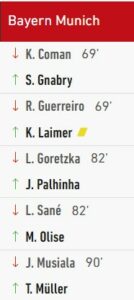 Sané s’essaye à la frappe lointaine, d’abord à la 76e puis à la 79e avec un petit rebond devant le gardien mais ce dernier n’est pas surpris et repousse le ballon.