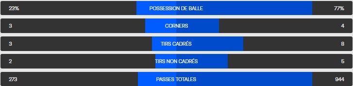 Encore une perte de balle côté locaux après une passe réalisée à contre temps et récupération haute du Bayern.