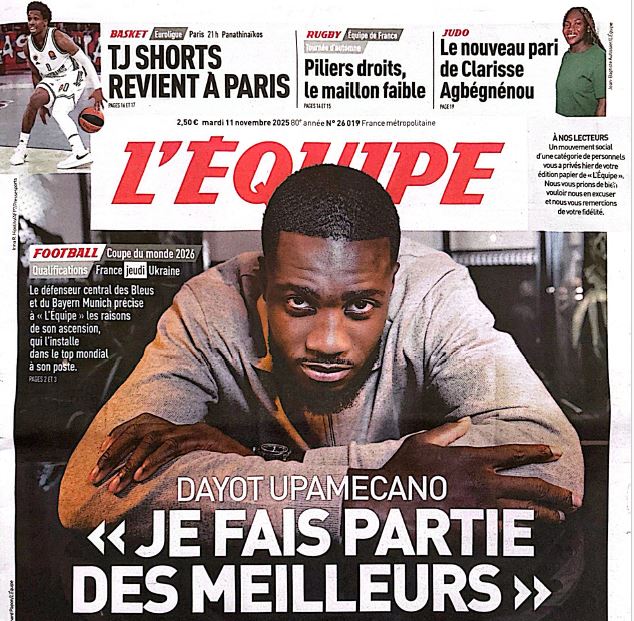 Retrouvez l’intégralité de l’interview de Dayot Upamécano parue ce mardi 11 novembre dans le quotidien l’Equipe. L’article avait été posté initialement le 12/11 afin de ne pas spoiler le journal, souhaitant respecter la propriété de l’article qui n’est plus disponible en kiosque (mais toujours sur le net)
