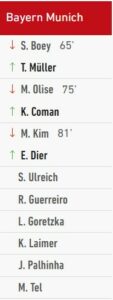 82e, Muller oriente magnifiquement, est accroché mais s’arrache pour transmettre à Kane qui décale Gnabry. Ce dernier ajuste très habilement Grabara au second poteau. 2 – 3 !!